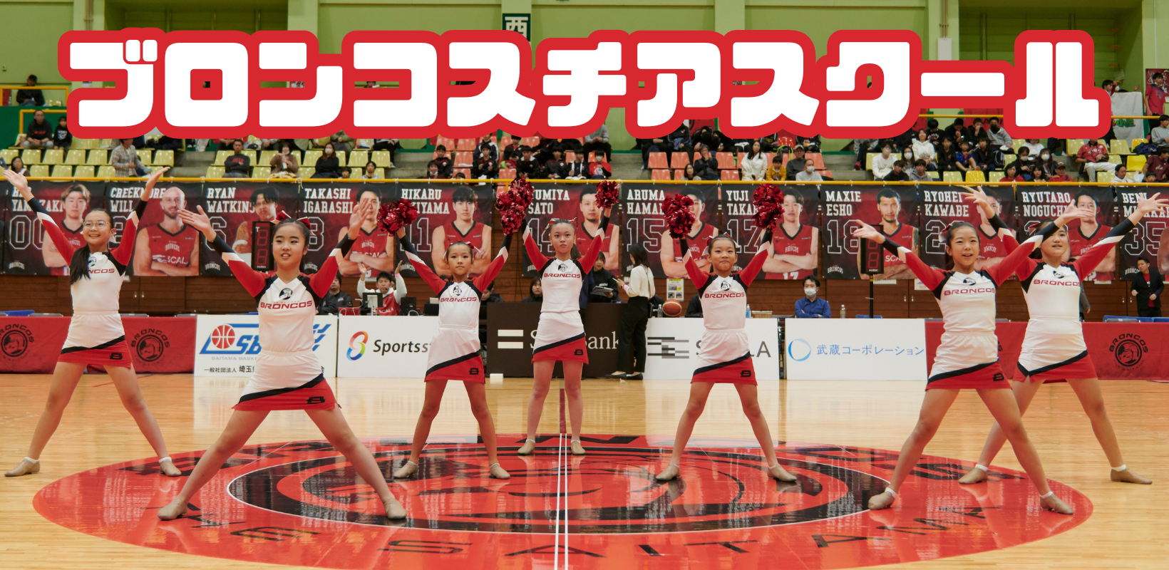 「地域の応援」「プロスポーツ応援」を体験することで、生徒の大きな成長を目指します。 "チアスピリット"を身につけながら、チアリーダー本来の応援を中心としたスクールです。 練習の成果をさいたまブロンコスの試合会場で必ず発表できます。